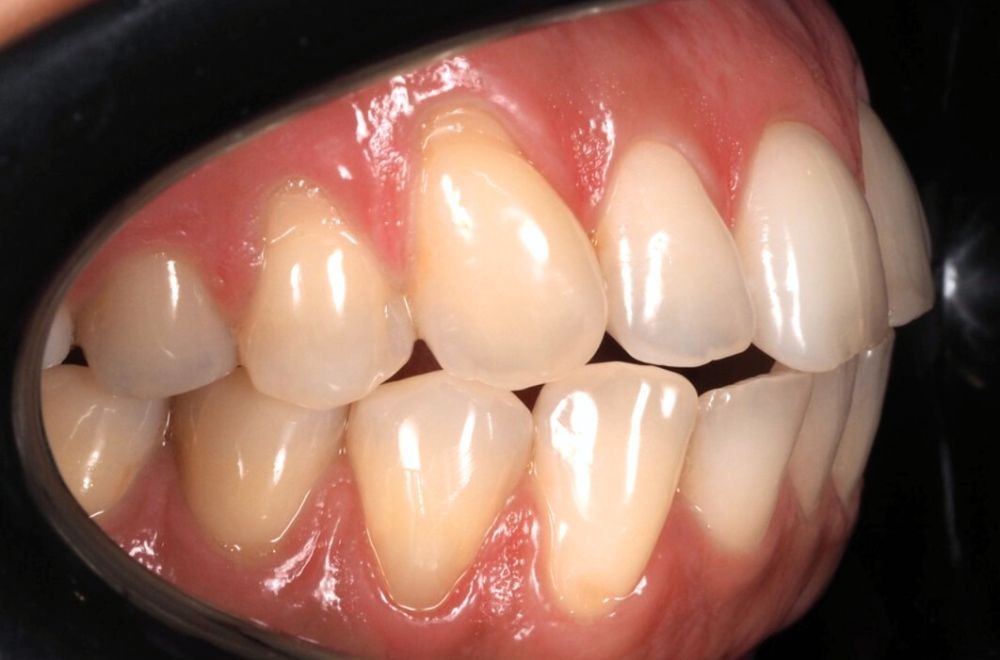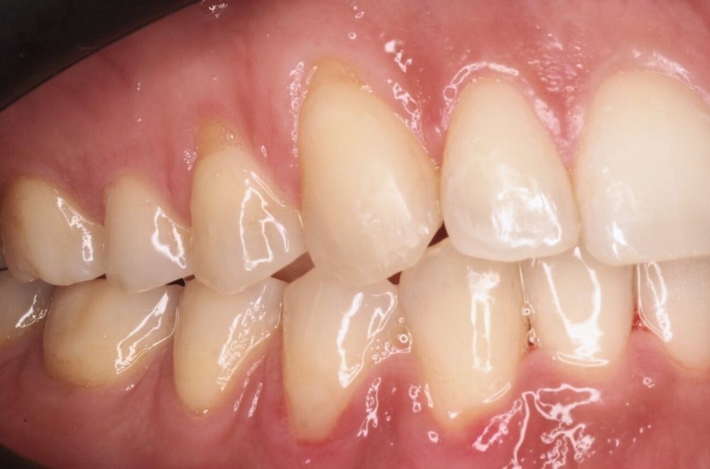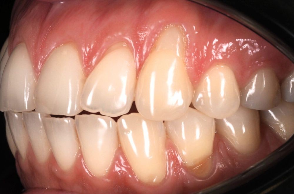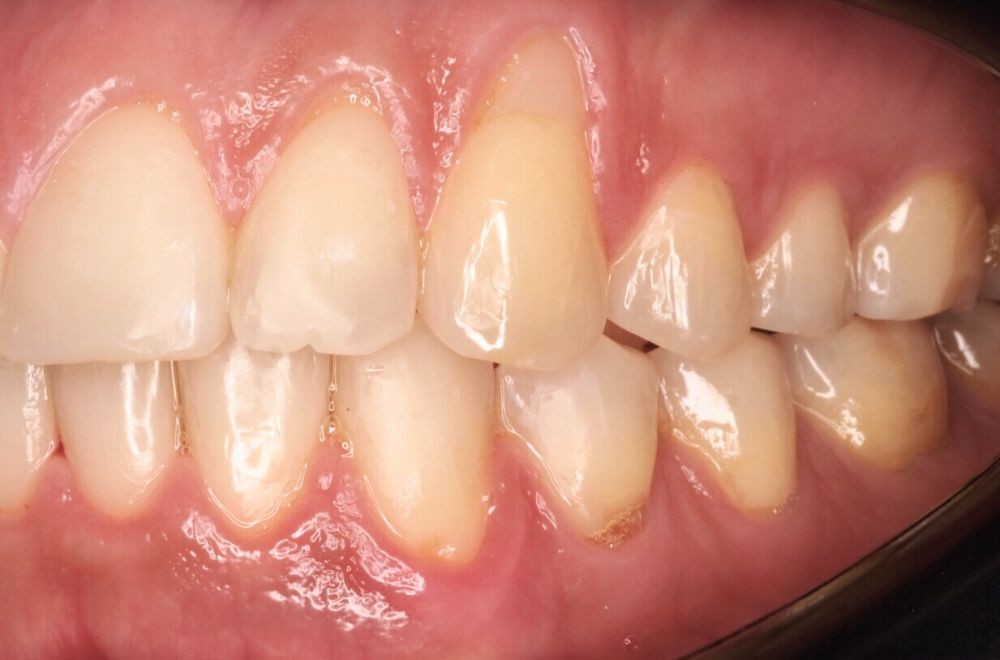 Mediante ortodoncia conseguimos reposicionar los dientes y equilibrar el contacto entre ambas arcadas, eliminando el punto de contacto prematuro que estaba provocando desgaste dental.